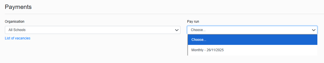 This can be done by going to your Edupay site and locate "Payrun" in the navigation bar at the top of the page. (This is normally actioned on MAT level denoted by the grey navigation bar)