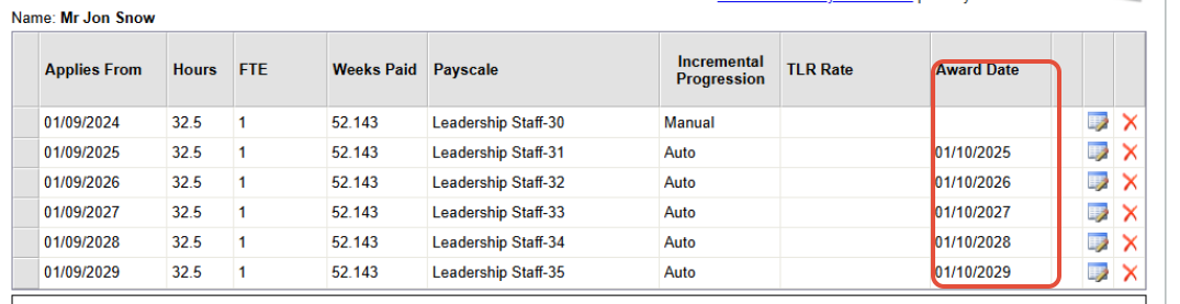 When an employee is on ‘auto’ timeline in BPS they will automatically be due to increment annually- to check this navigate into the employees timeline, you should then see an award date.