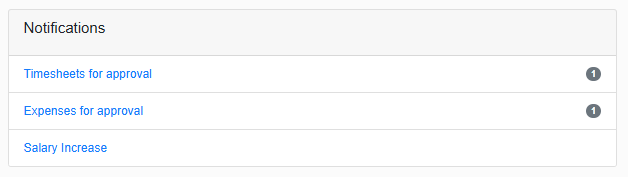 As you or your employees submit timesheets, the dashboard’s Notifications section will accumulate pending timesheets/expenses for approval. The number of timesheets awaiting approval is indicated by the grey number next to the notification: