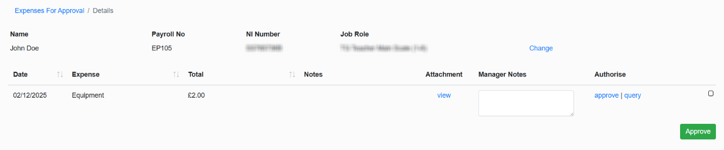 When approving Expenses, you can view any attachments that have been uploaded with the submission.