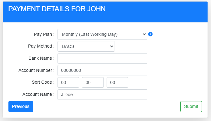 4. Provide payment details for your new start - this would include the "Pay Plan" (Pay Date) this employee will fall under.