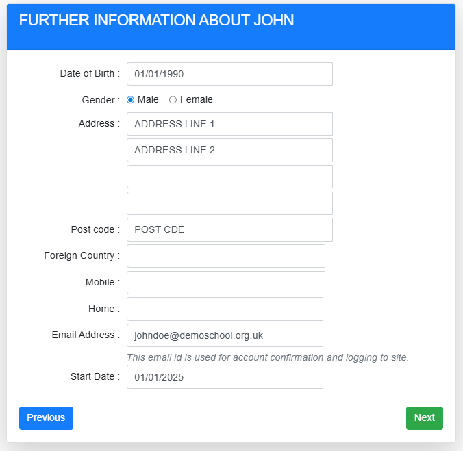 NOTE: You will need all personal details ready to hand to proceed with adding your new starter to EduPay (Date of Birth, Bank Details, Contact Information, etc.)