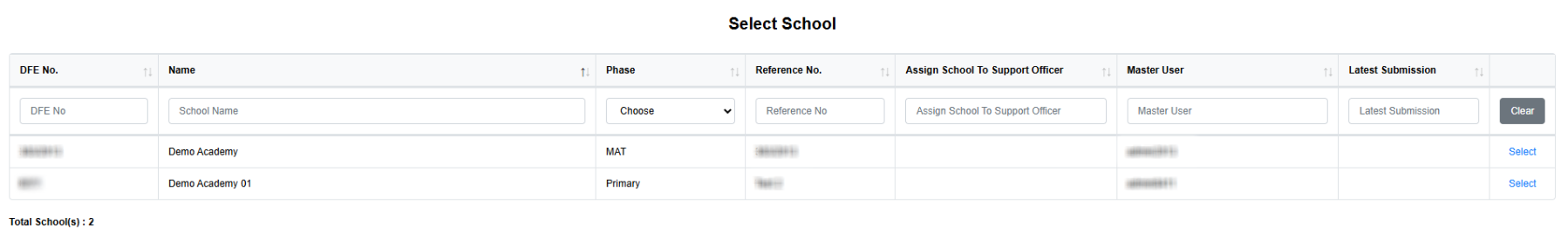 When you log-in, you will either be taken straight to your dashboard, or have to select your relevant school:
