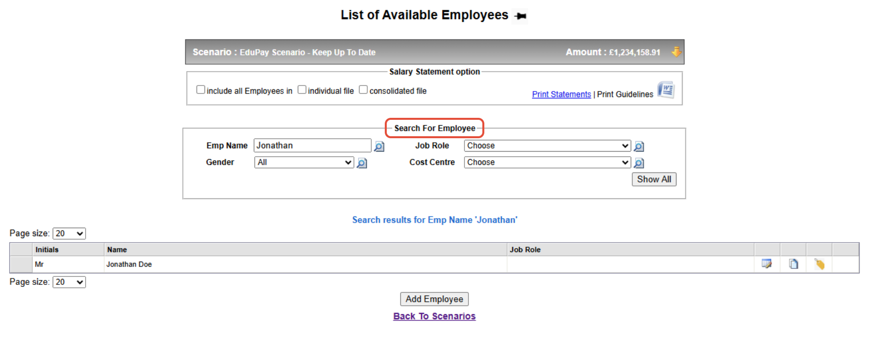 Once you have navigated to your employee scenario, you will see a list of all your employees, including any new starters: