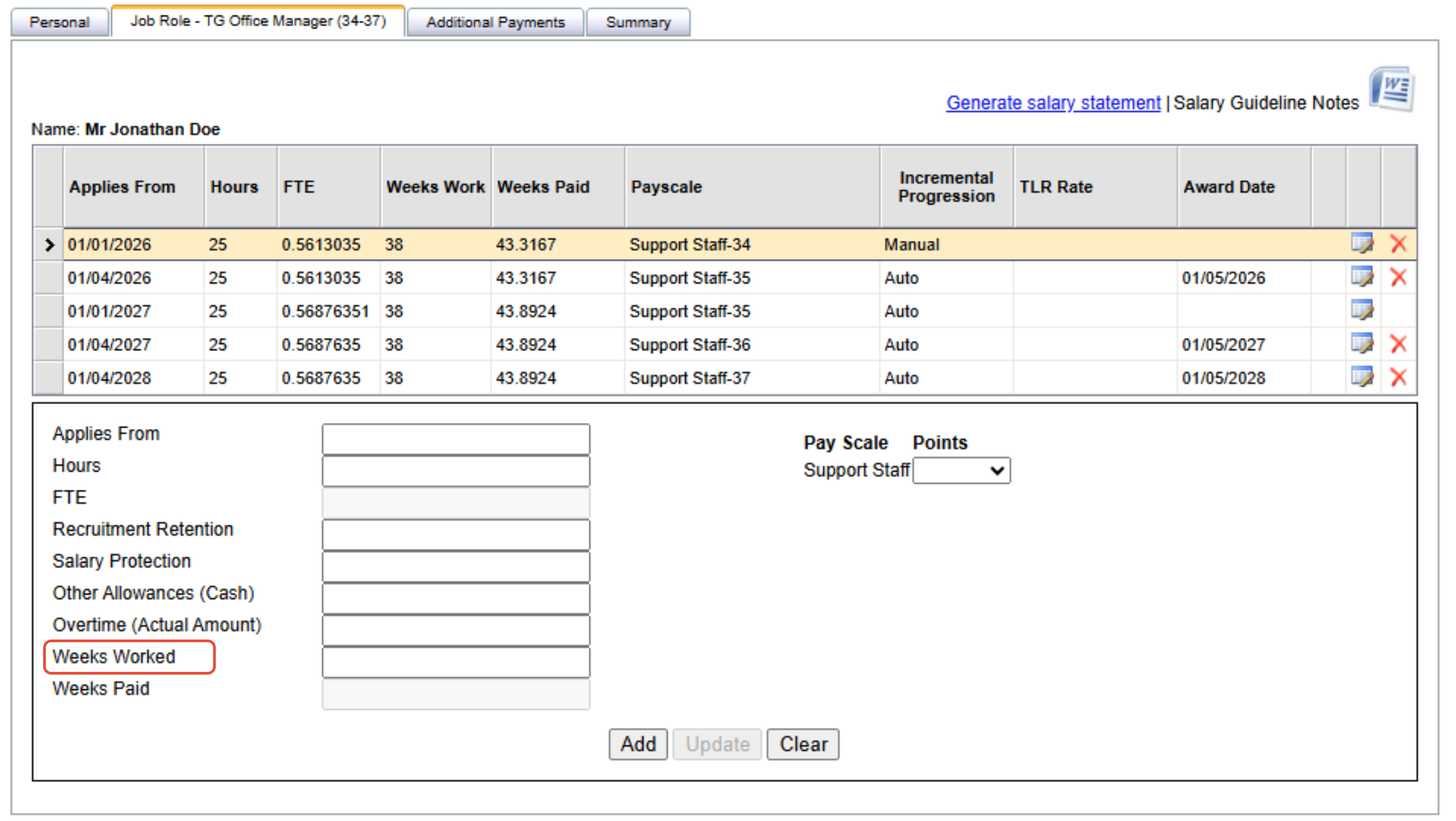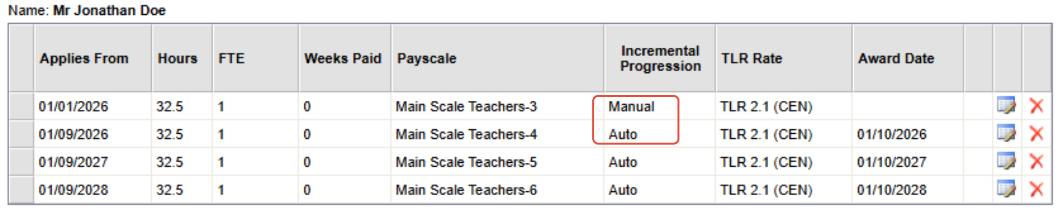 First, you will see your MANUAL timeline, this relates to the information you have input manually yourself. Below that, you will see AUTO timelines, that relate back to that auto-increment, and reflect that pay scale increase each year as of the relevant increment months per job role.