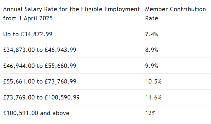 Contribution bands for 2025/26 (Source: TPS Site)