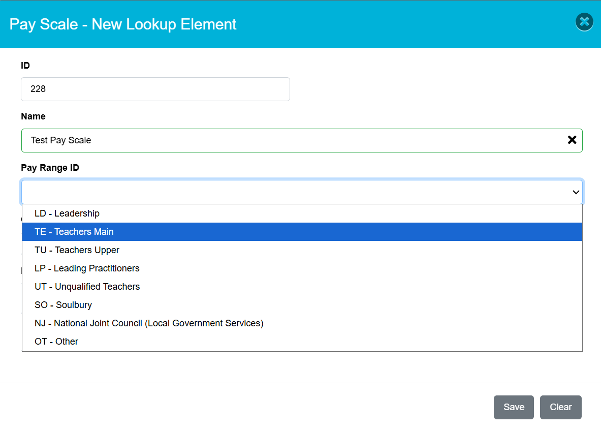 You will be greeted by a popup box like below, simply enter the name of the scale and the pay range ID from the drop down list (this ID is used in the Work Force Census)