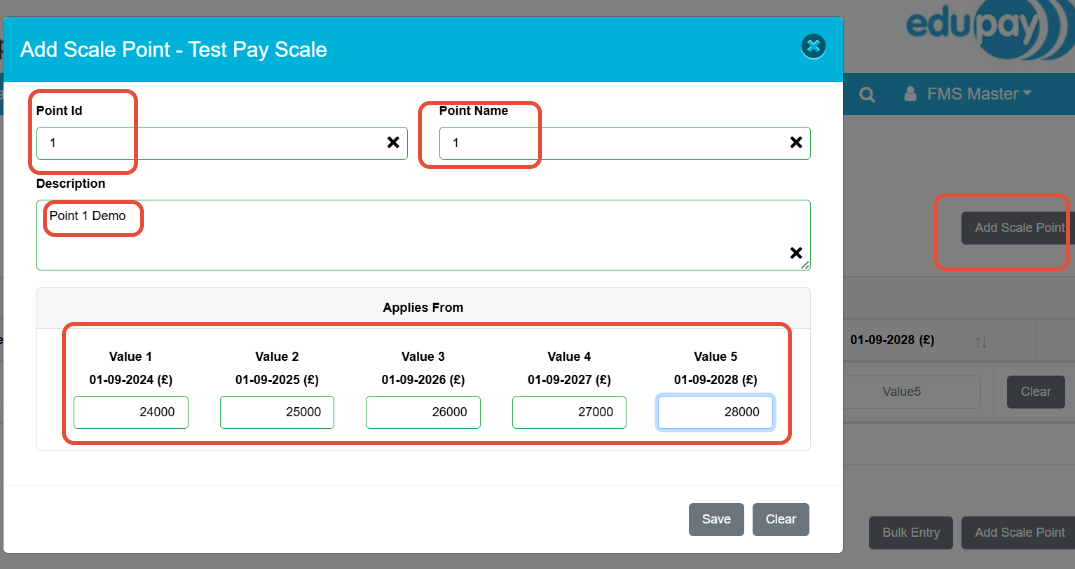 Click Add Scale Point on the top right and add the number of points you need aswell as the monetary values behind the point like below.