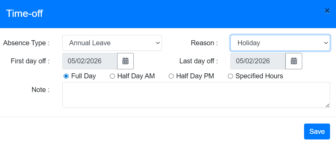 On the top right you will see a blue box which has a drop down of the type of leave you wish to take.