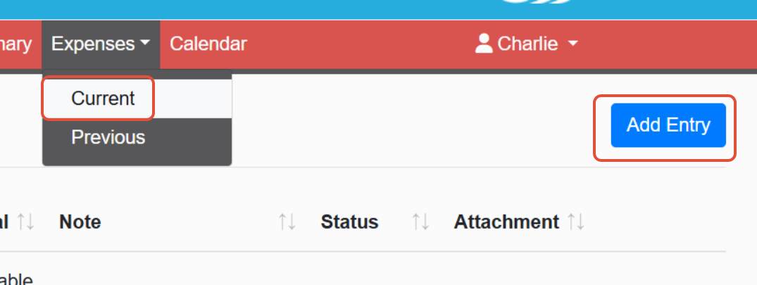To enter an Expense you will have to navigate to the "expense" tab, select "current" and then add entry.